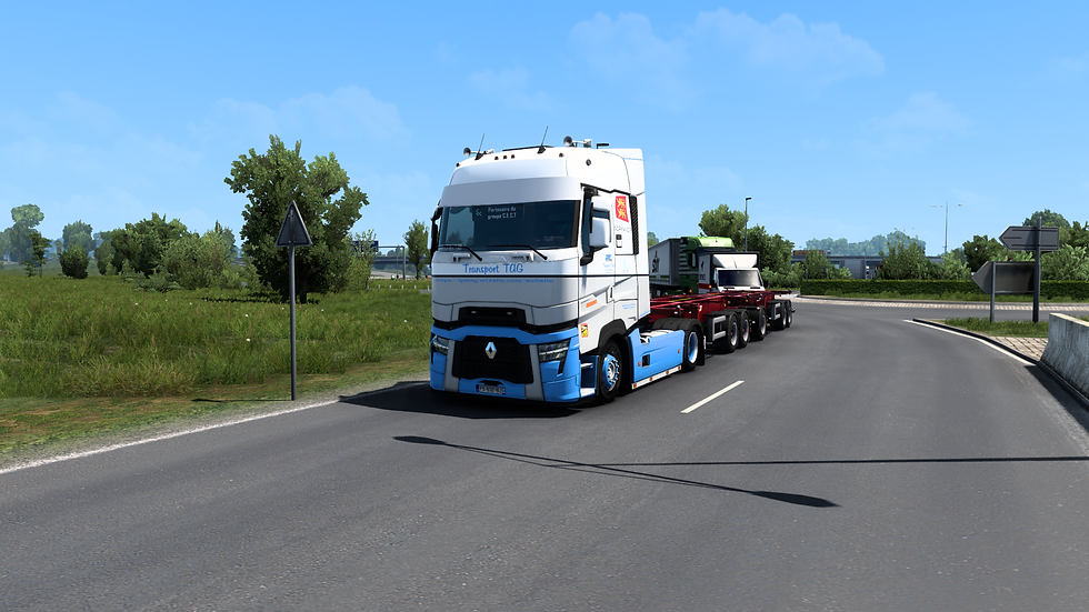 Pour ma part, ce mois-ci, j'ai le Renault Range T Evolution avec son bi-train d'attitré. J'installe mes affaires et je pars direction Total Le Havre (juste à côté du dépôt) chargé du lubrifiant direction le sud de l'Espagne. Je coupe en fin de soirée sur une aire de repos situé juste avant la frontière espagnole.